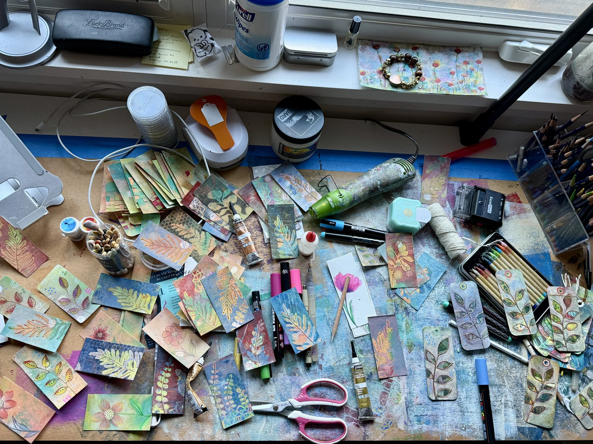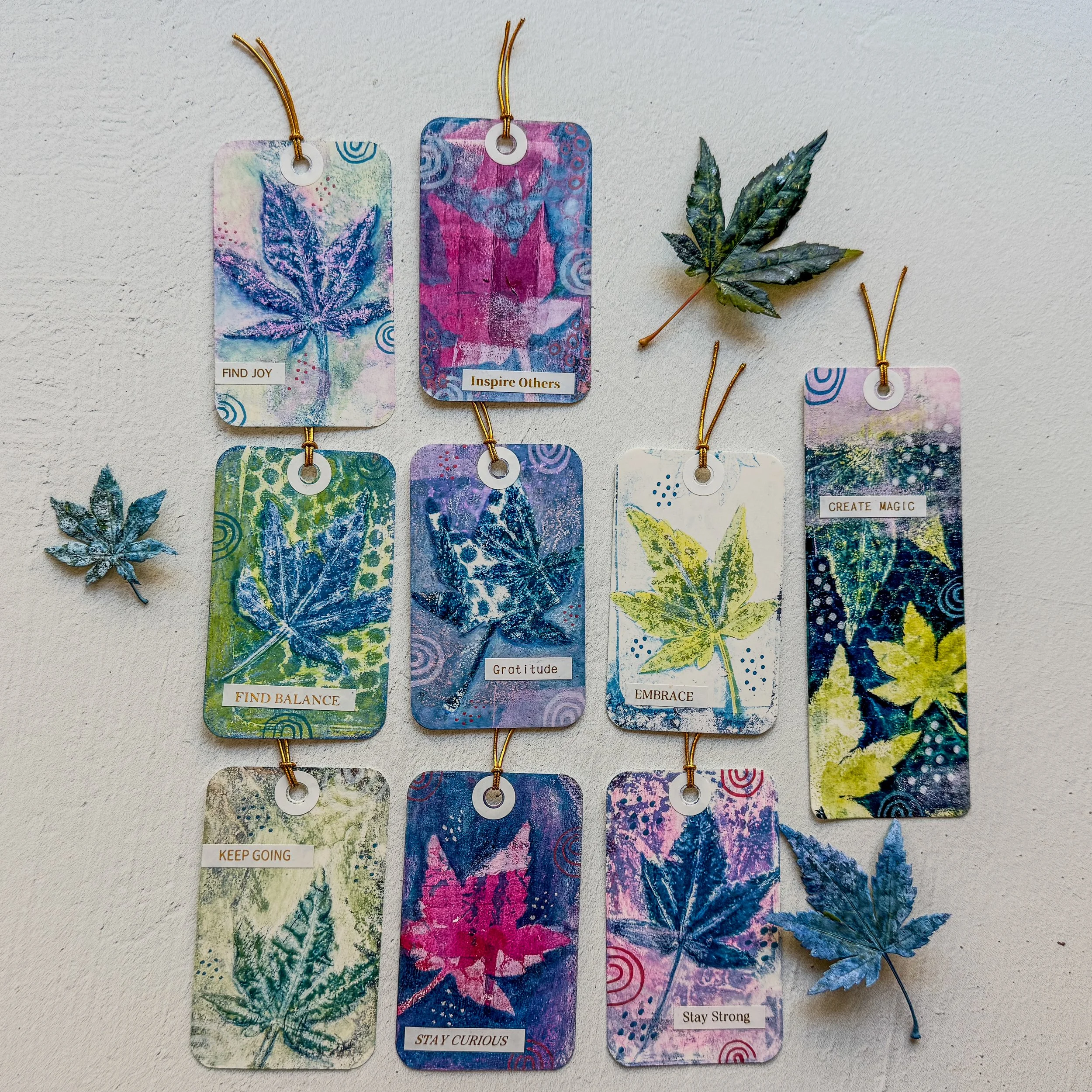 45 minutes of zero decision-making and 100% playing, those leaves had become nine monoprint tokens.