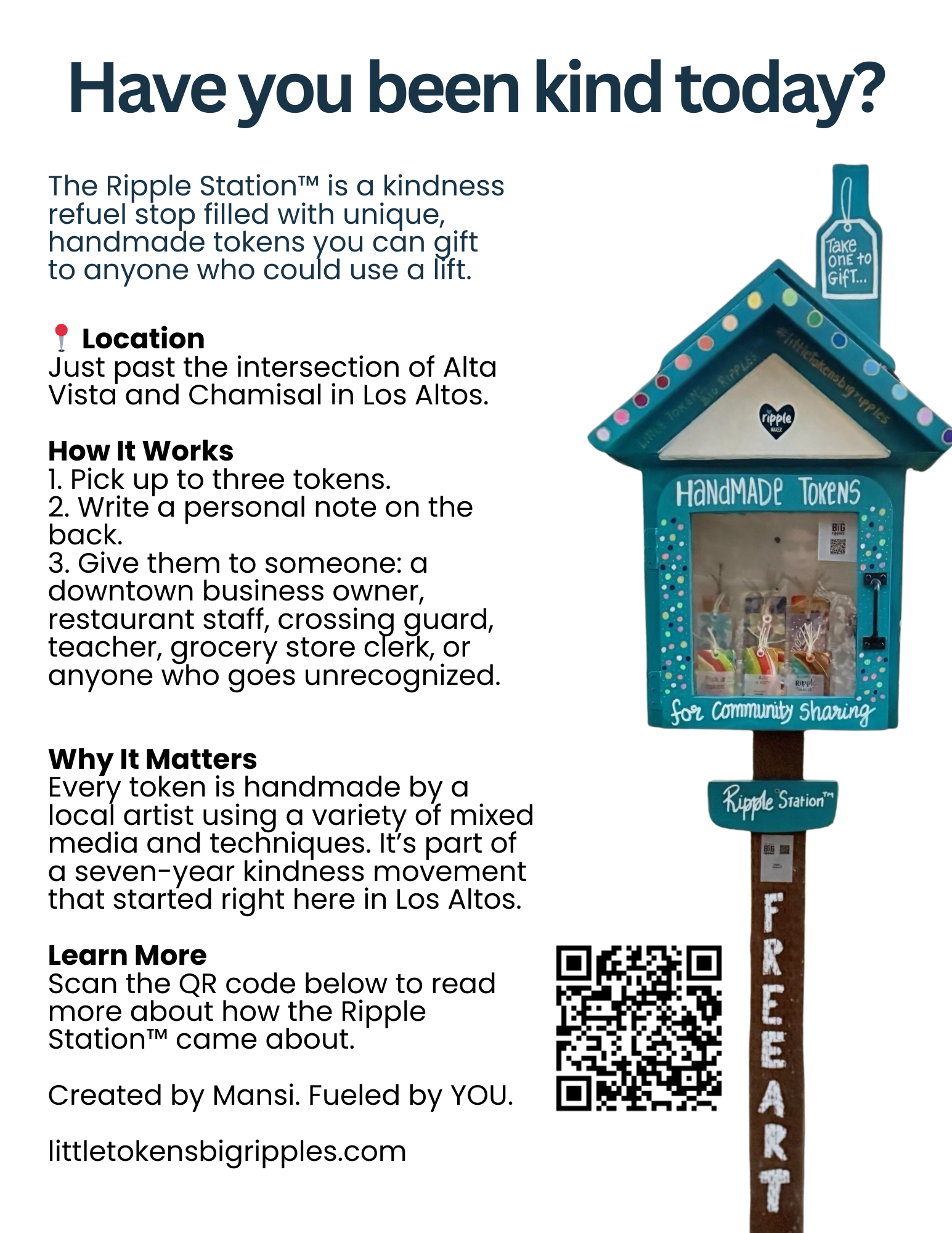 The Ripple Station™ in Los Altos is now stocked with tokens handmade by an 11-year-old artist, inspiring neighbors to spread kindness to overlooked workers. See how this grassroots movement is growing.