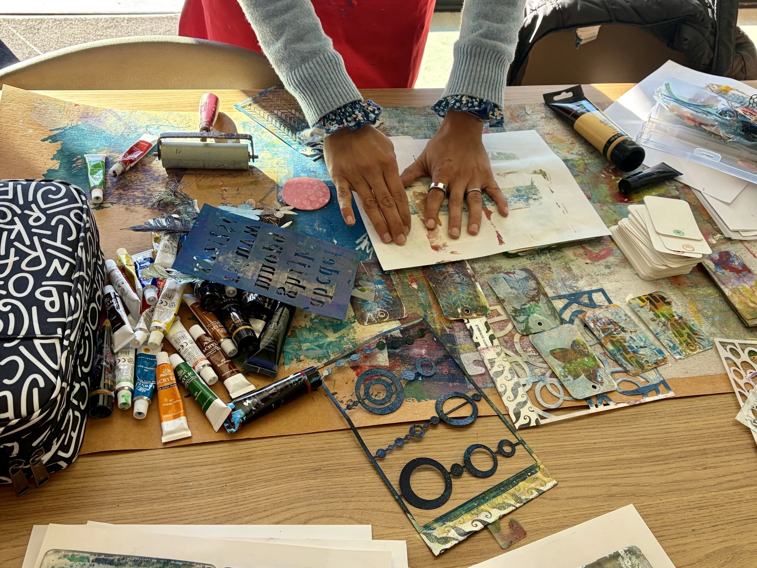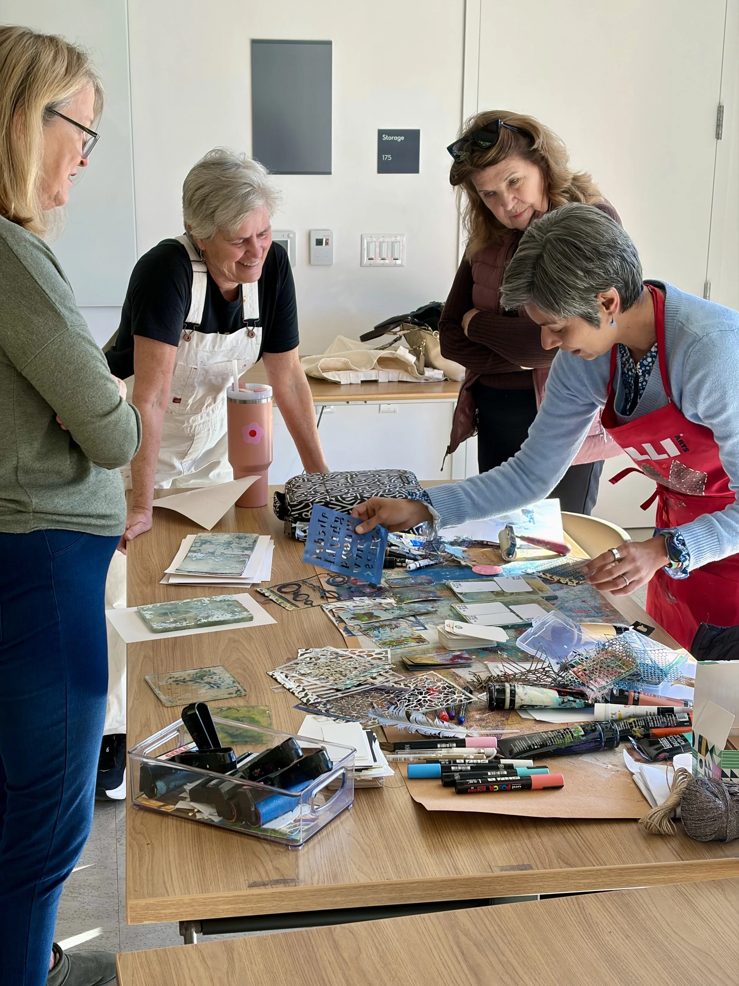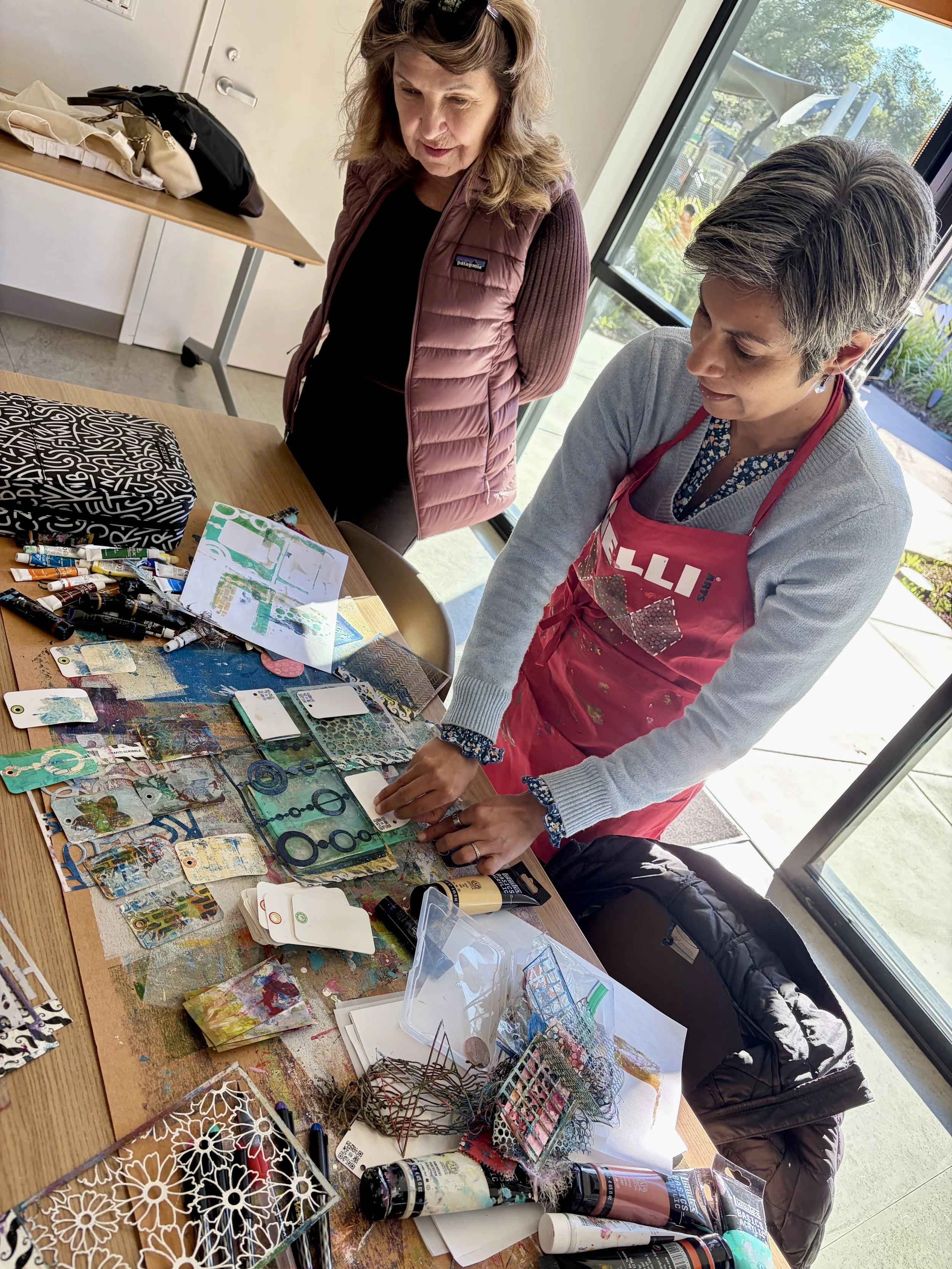 This was a hands-on, permission-giving creative experience hosted by Arts Los Altos at our local Community Center. I used simple materials and playful layering to help attendees bypass self-judgment and rediscover curiosity through making—and then letting go.